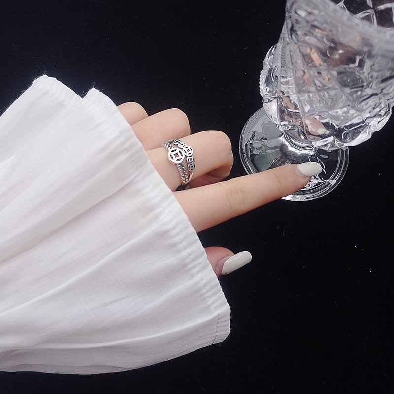 s925纯银双层钱币戒指国潮个性复古做旧泰银招财铜钱开口指环男女