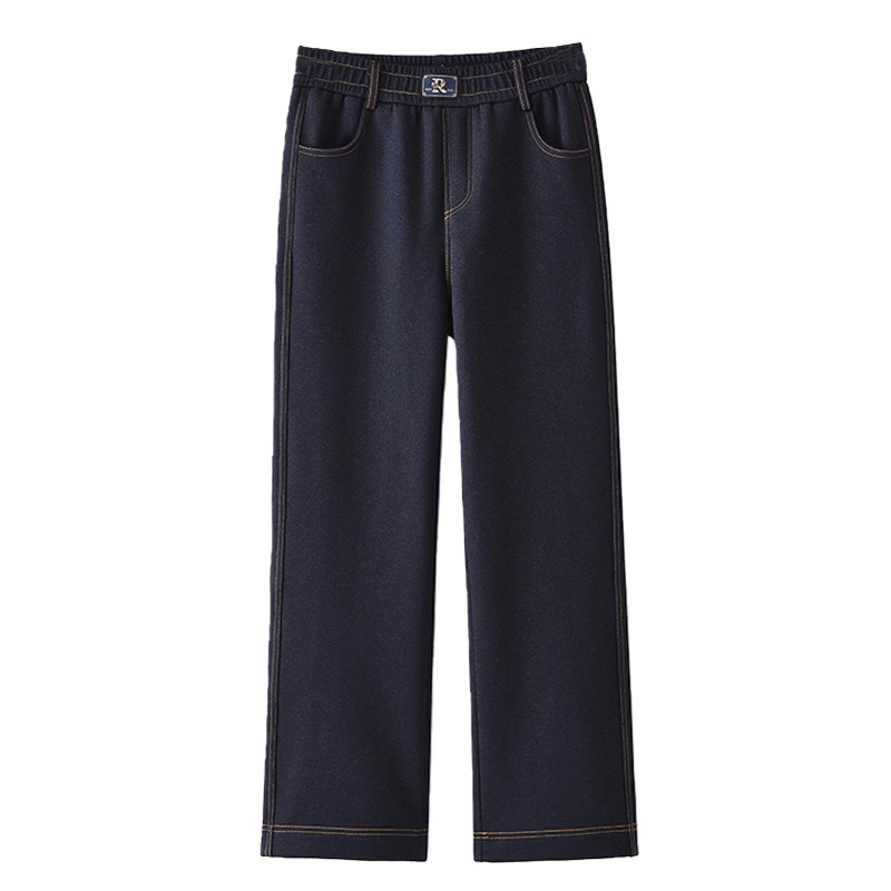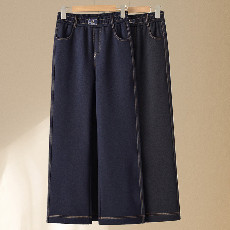 中年妈妈牛仔裤女新款裤子秋冬款加绒直筒裤中老年人高腰宽松女裤