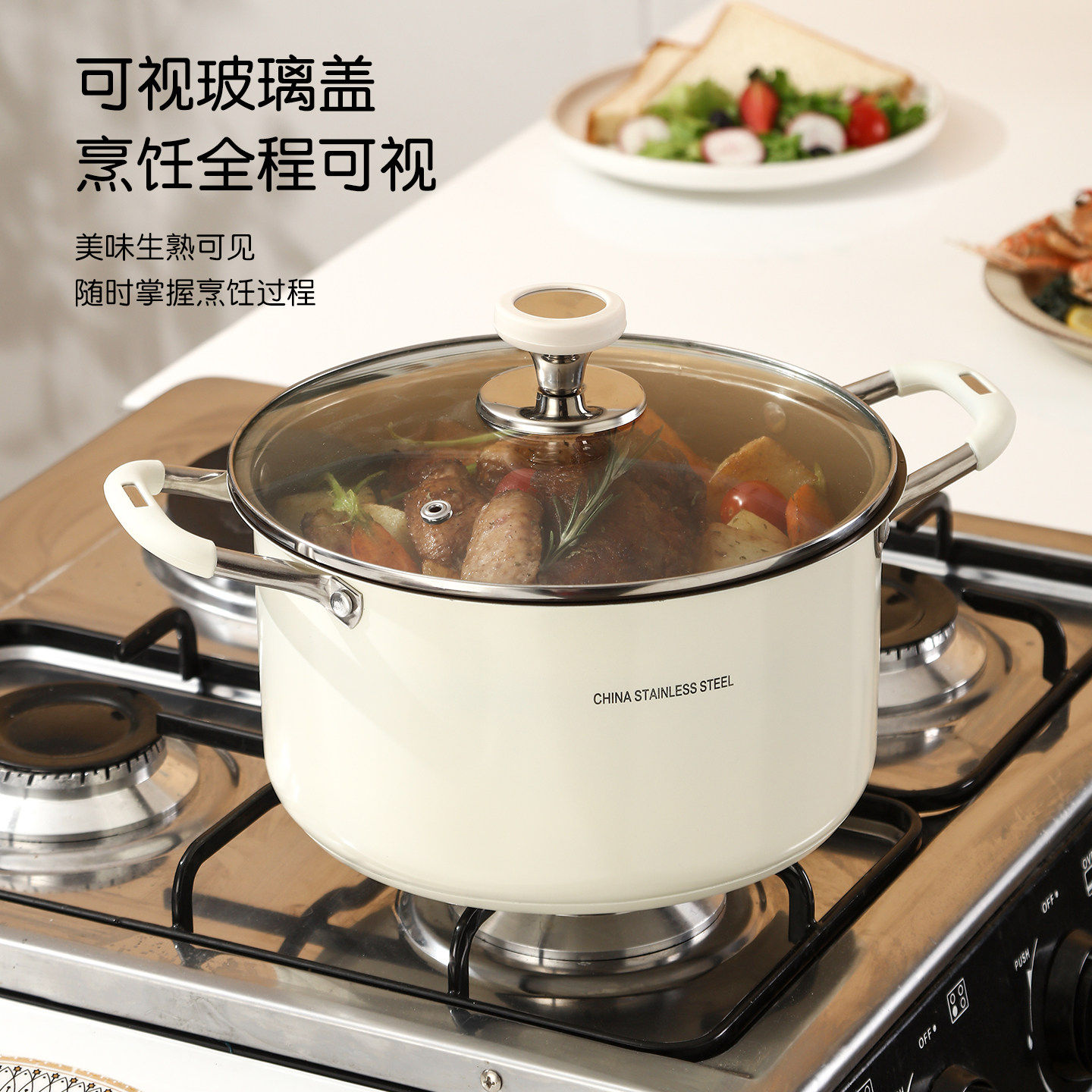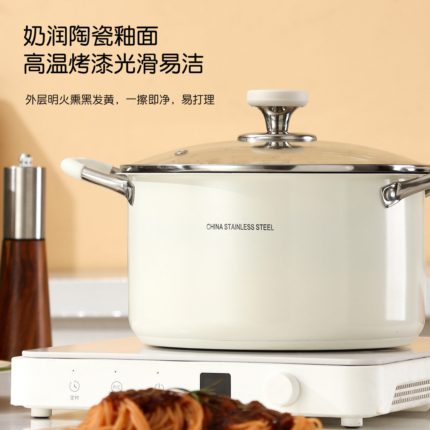 康巴赫304不锈钢汤锅家用2026新款陶瓷煮粥锅煲汤双耳煮锅带蒸a86
