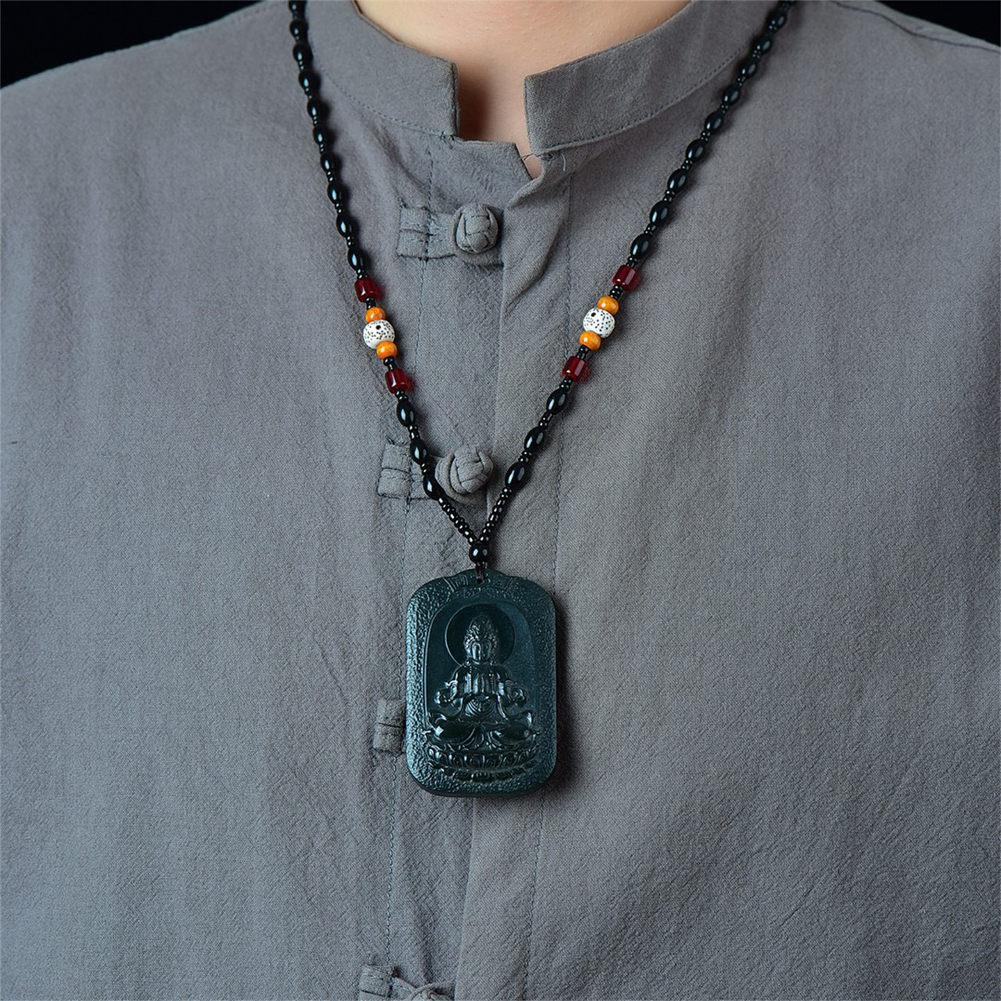送证书天然新疆和田玉青玉挂件南海观音菩萨玉石吊坠男款玉佩8865