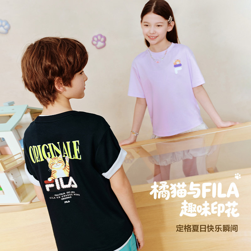 【斐云棉】FILA斐乐儿童短袖T恤女童2026年夏季新款男童上衣小猫T