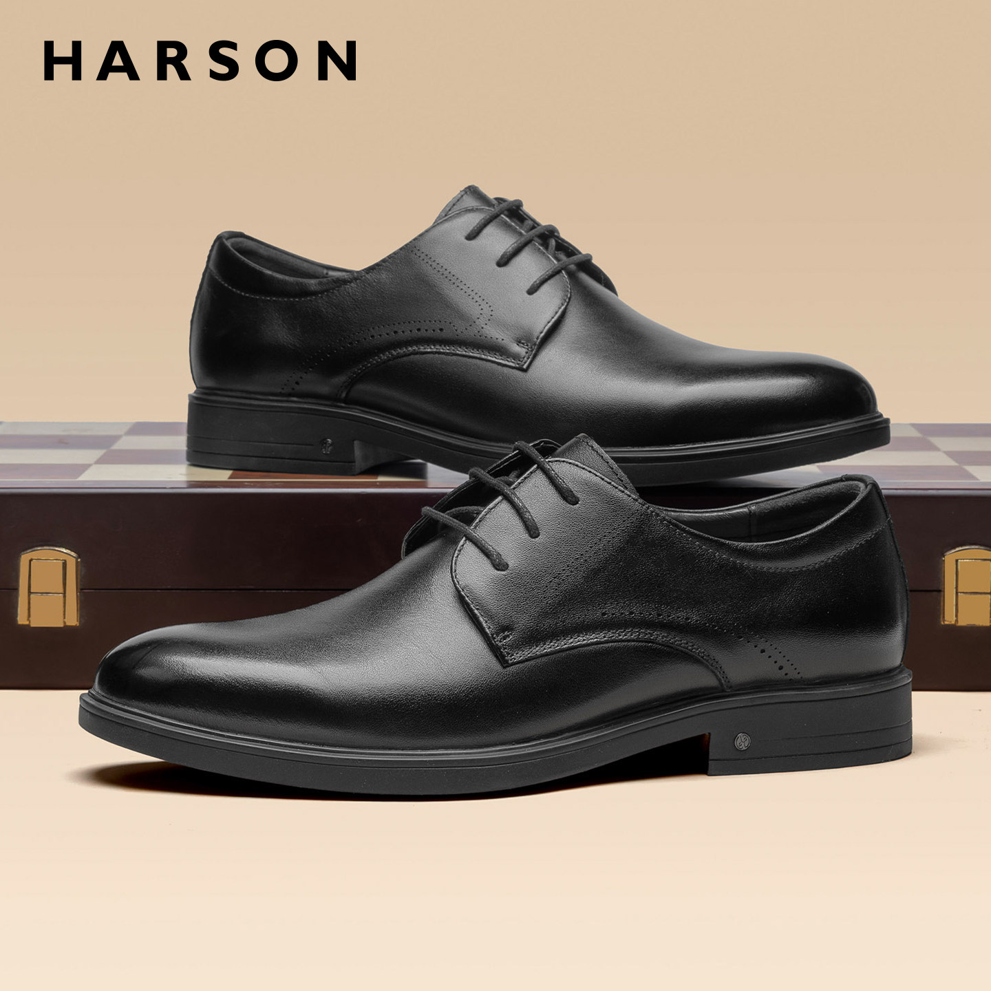 哈森男鞋新款男士商务皮鞋男结婚增高德比鞋真皮休闲鞋子黑色皮鞋