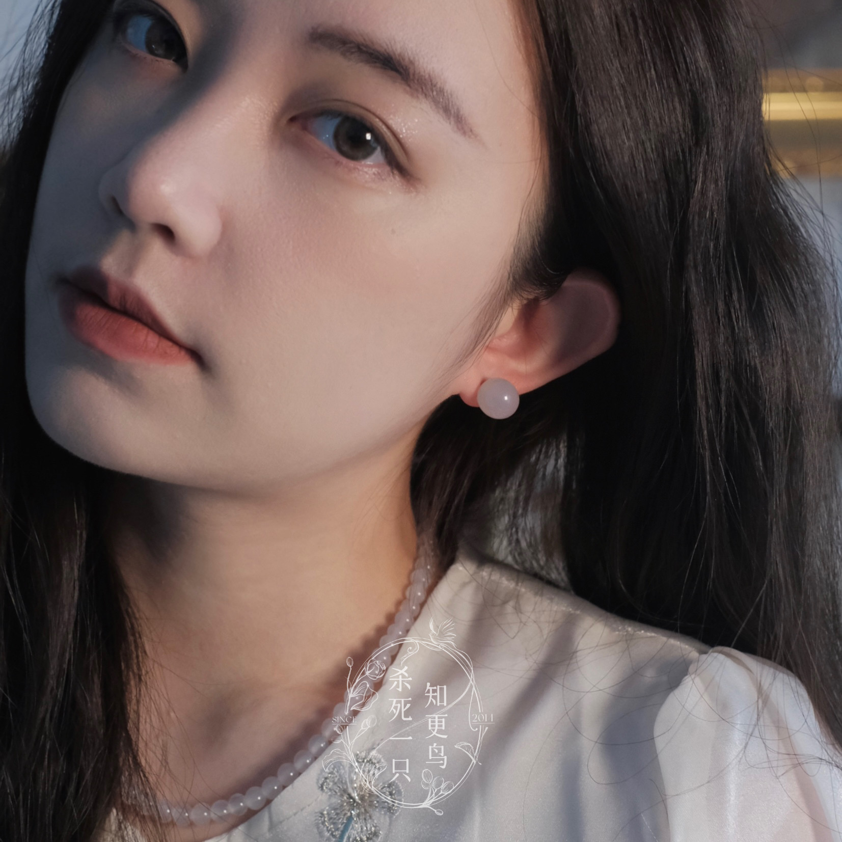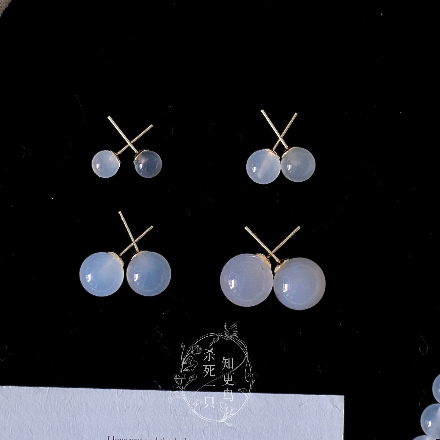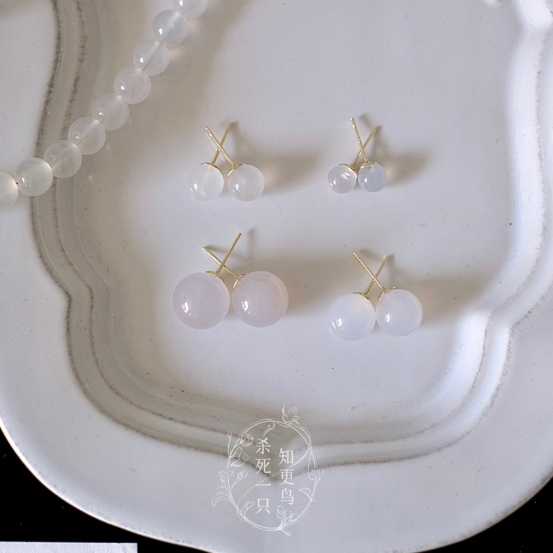 《月白》春夏新中式小众清冷气质冰透天然白玛瑙玉髓圆球耳钉耳夹