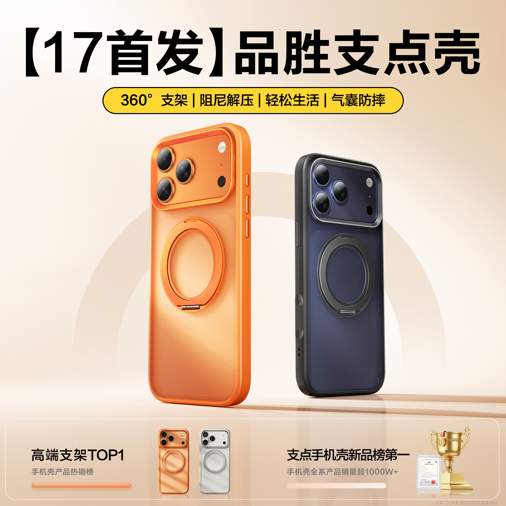 品胜支点壳适用苹果17Promax手机壳新款iPhone16pro保护套旋转支架壳14Pro防摔外壳i13透明磁吸壳air男女高级