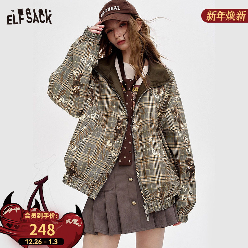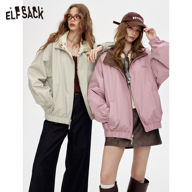 森马外套女连帽插肩袖宽松秋季潮流刺绣撞色夹克美式复古-TK