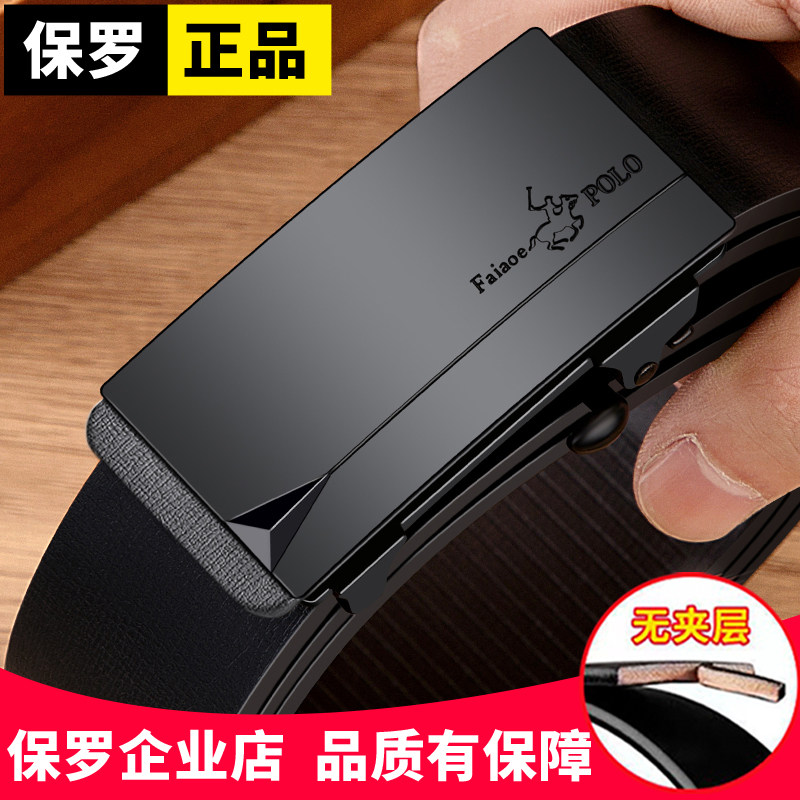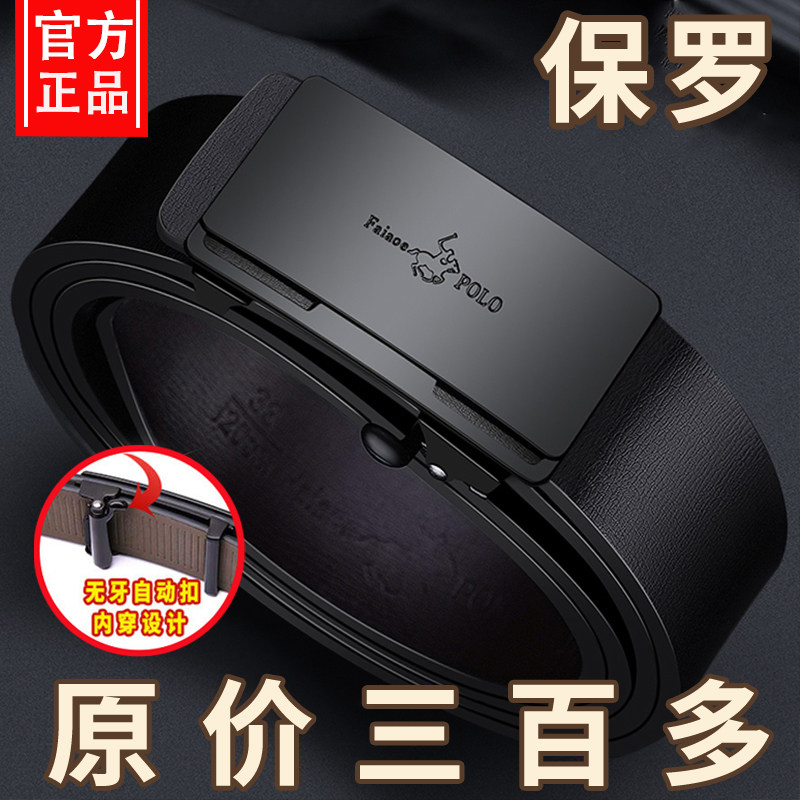 保罗皮带男真皮无牙自动扣男士腰带青中年百搭裤带潮流松紧内穿