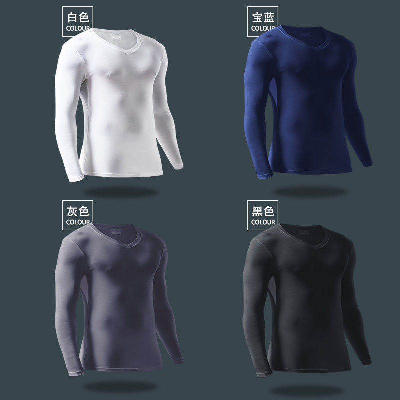 男士薄款莫代尔秋衣修饰基础低领v领单件修身打底衫保暖内衣上衣
