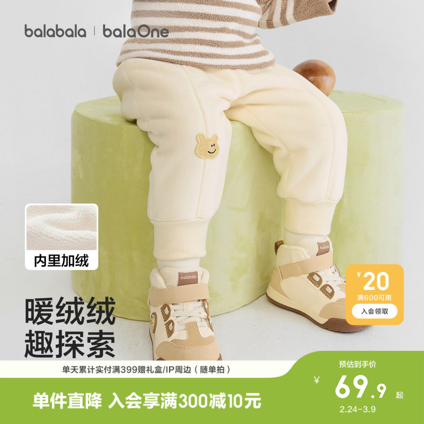 巴拉巴拉童装宝宝裤子男童婴儿加厚长裤2026新款春秋休闲外出运动