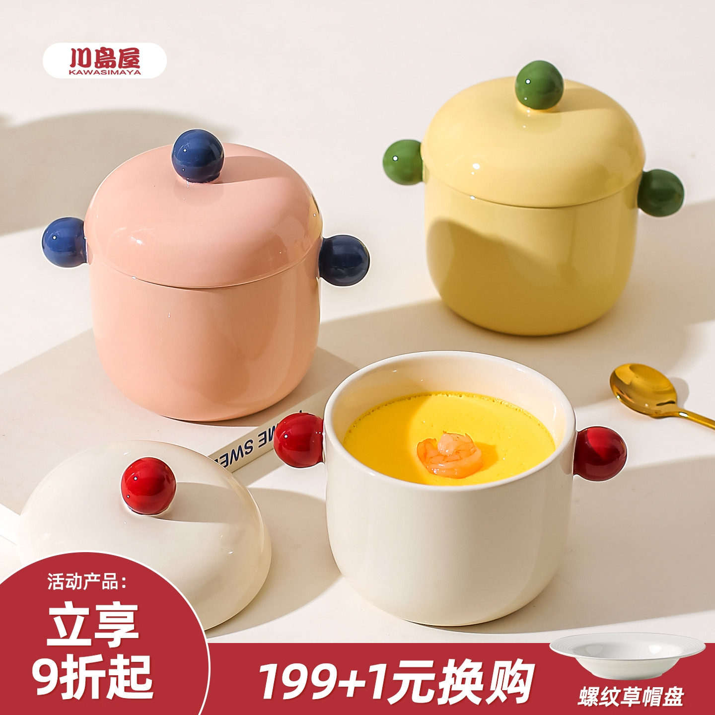 川岛屋可爱炖盅家用瓦罐炖燕窝一人份隔水炖汤盅陶瓷蒸蛋羹专用碗