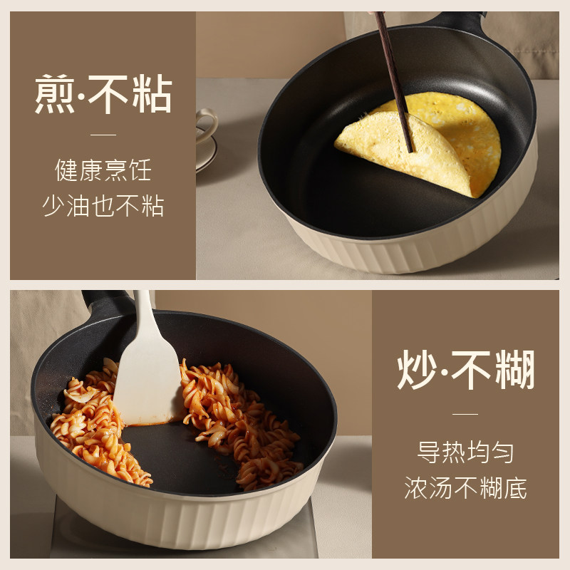韩国麦饭石不粘锅炒锅家用电磁炉燃气灶通用炒菜平底不沾锅麦石锅