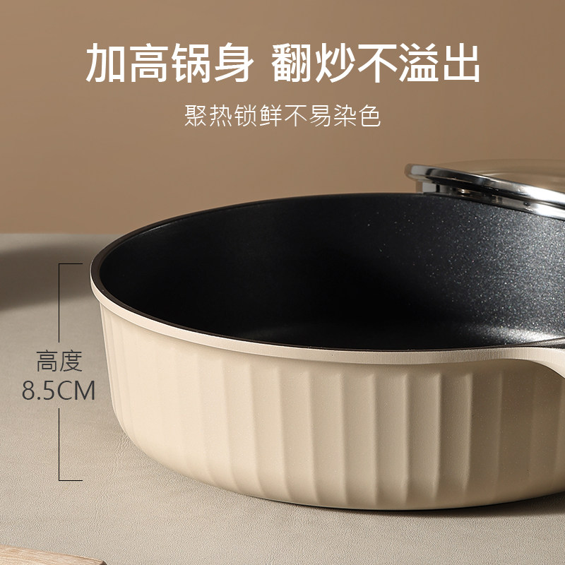 炊大皇不粘锅炒锅家用不跑油聚油炒菜锅平底不沾锅电磁炉燃气灶用