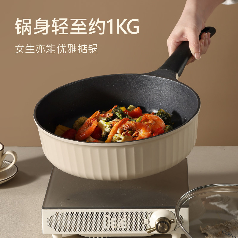 卡罗特不粘锅炒锅家用炒菜平底锅电磁炉燃气灶专用28cm聚油不沾锅
