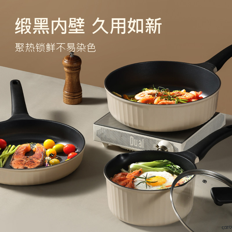 卡罗特不粘锅炒锅家用麦饭石炒菜锅平底不沾钛锅电磁炉燃气灶专用
