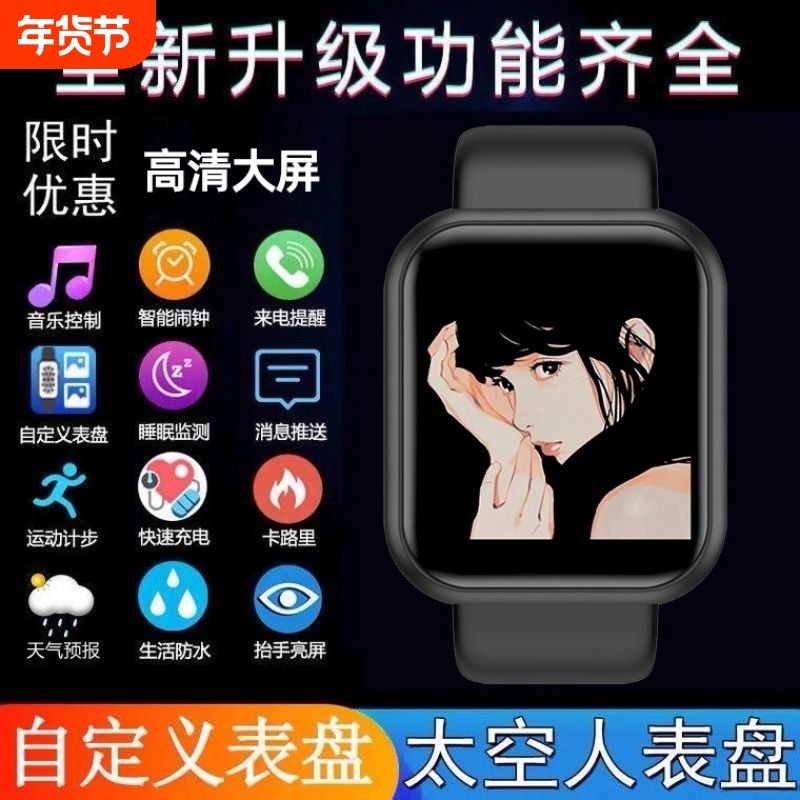 【首单立减】智能手环多功能运动计步闹钟蓝牙手表情侣男女款