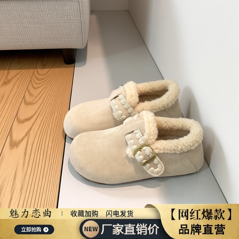 厚底内增高加绒全包勃肯鞋毛毛鞋女2025新款冬保暖低帮雪地靴棉鞋