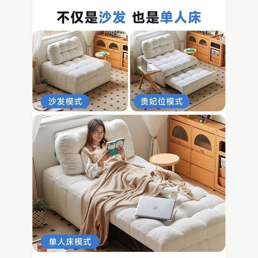 奶油风泡芙沙发床坐卧两用多功能小户型布艺客厅折叠伸缩单人沙发