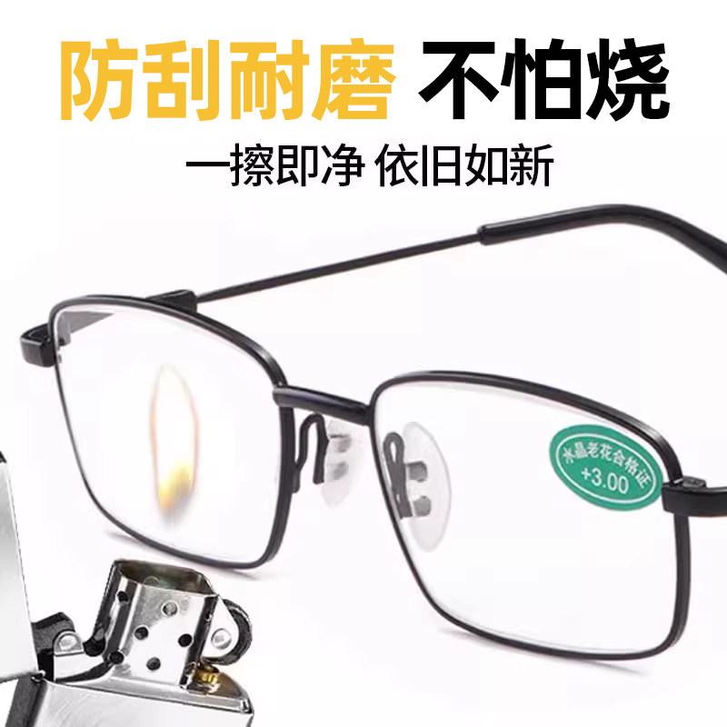 水晶老花镜男高档正品老花眼镜中老年人防蓝光抗疲劳变焦十大品牌