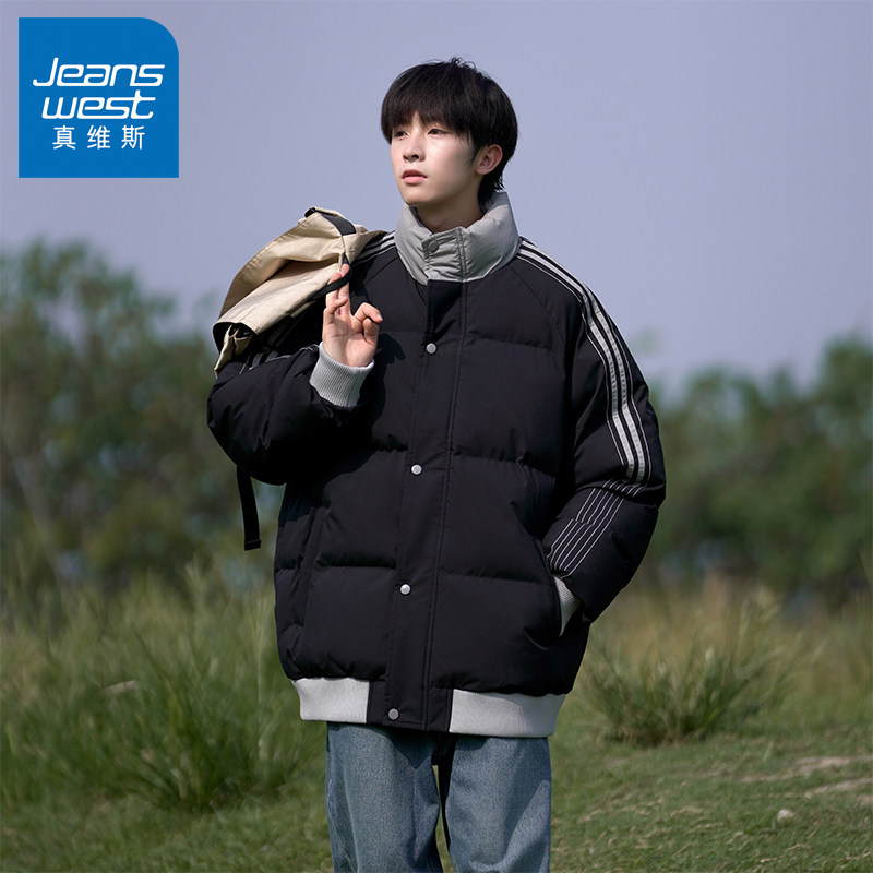 N5真维斯男款棉服2025新款冬季加厚保暖撞色棉袄情侣棉衣冬装外套