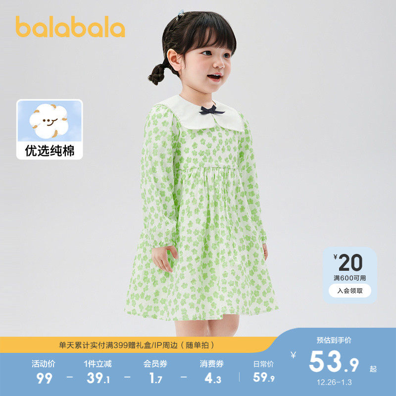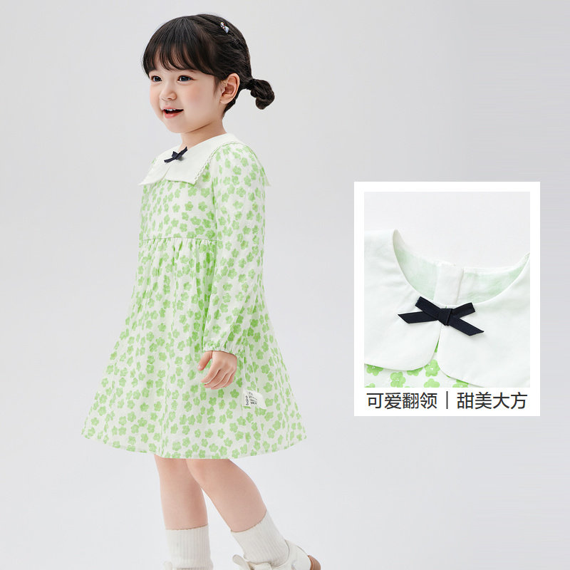 巴拉巴拉童装儿童连衣裙女童春秋装A字碎花裙小童宝宝洋气甜翻领