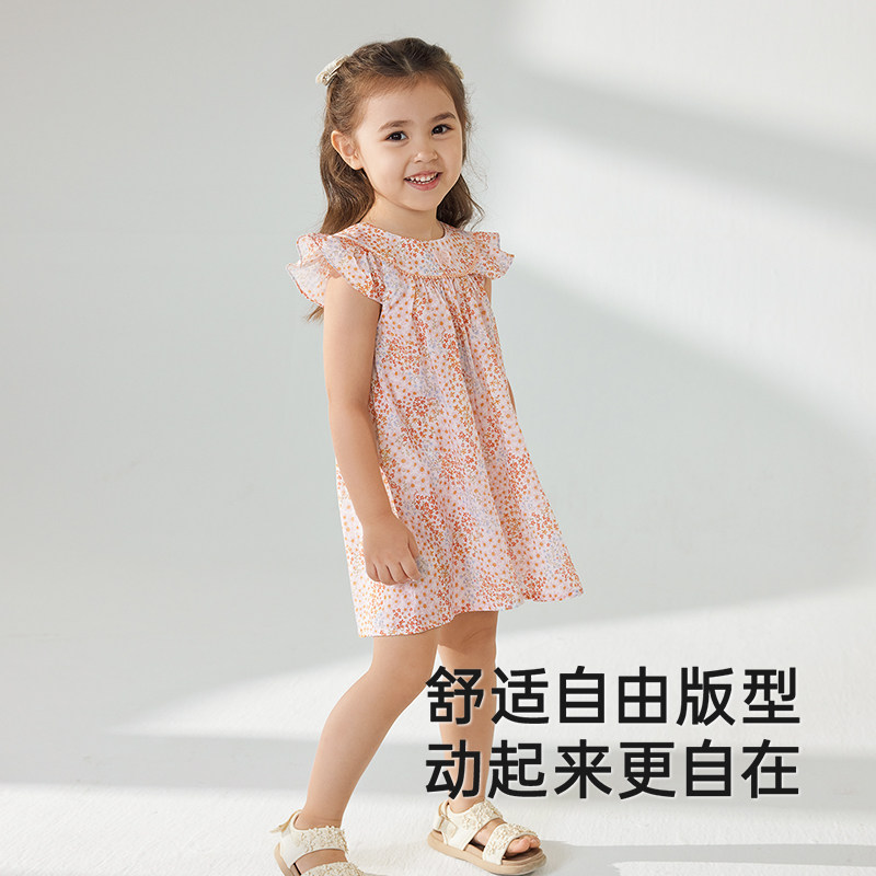 【商场同款】英氏女童连衣裙夏季短袖纯棉2025新款儿童碎花裙子