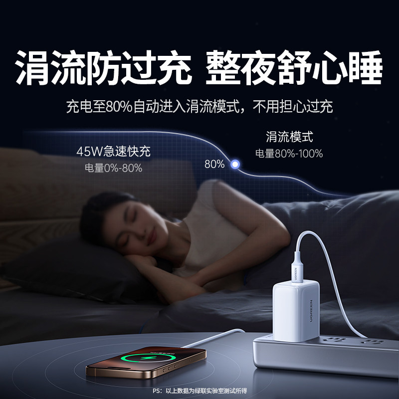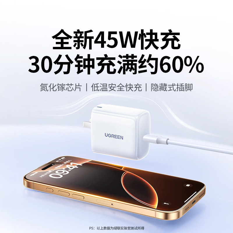 绿联45W氮化镓充电器头30W适用苹果17promax快充头16pro手机平板