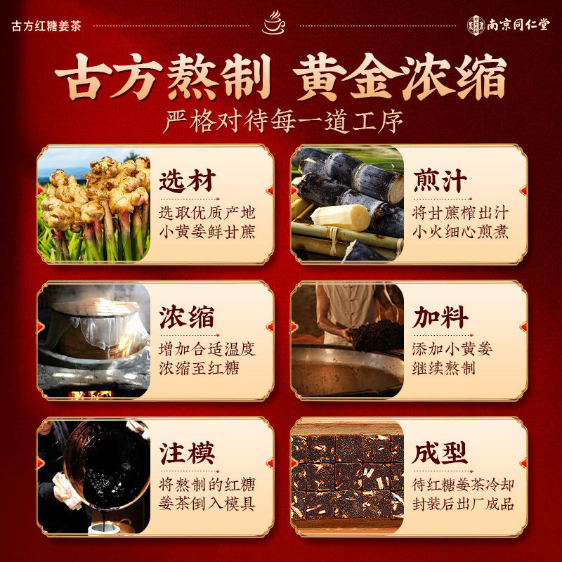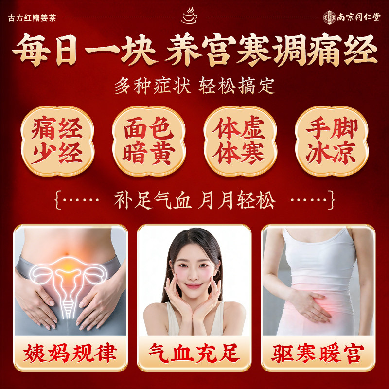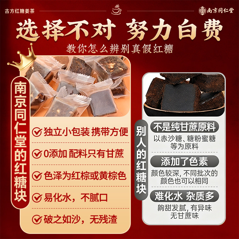 南京同仁堂红糖姜茶红糖块大姨妈宫寒调理痛经去寒暖胃单独小包装