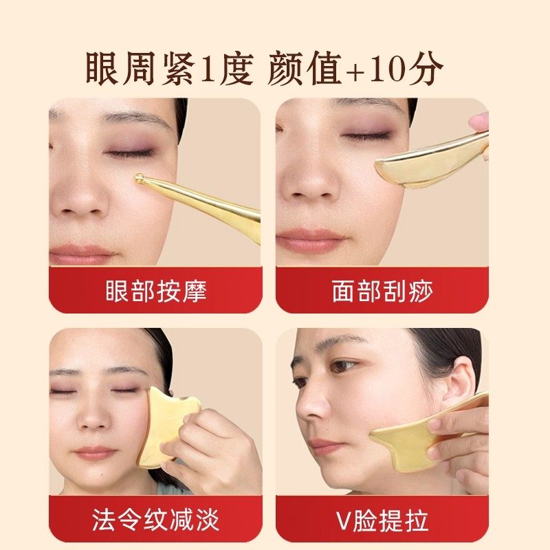 纯黄铜面部刮痧板面部眼部美容院经络穴位按摩器刮痧点穴拔筋棒