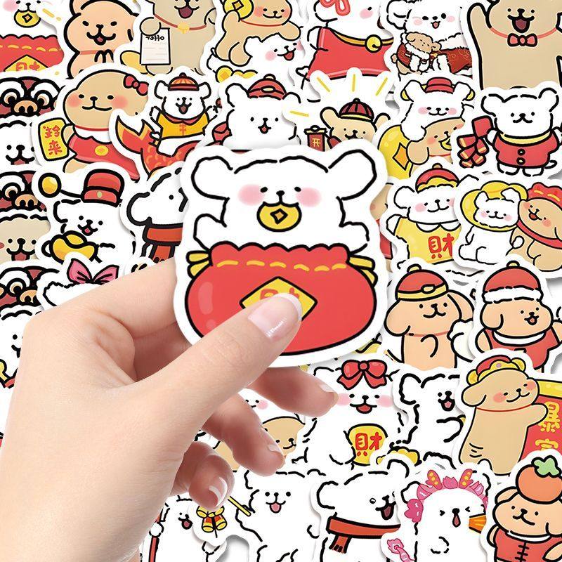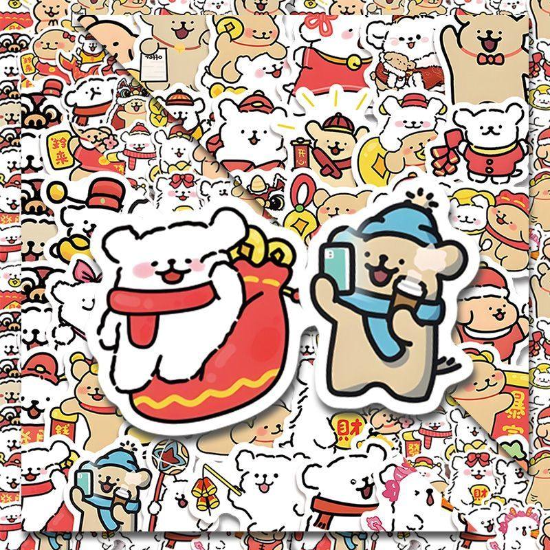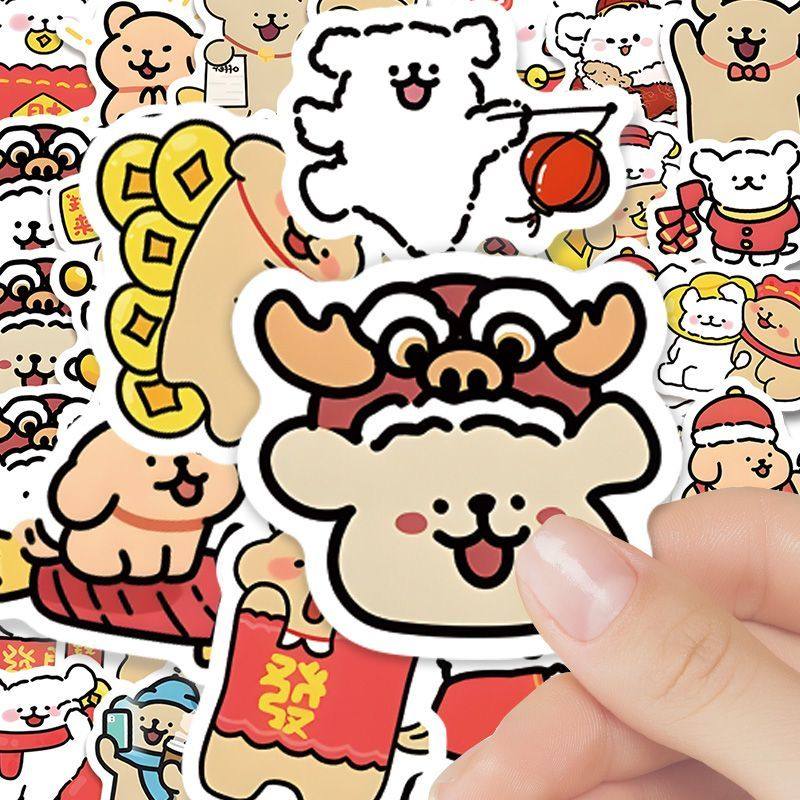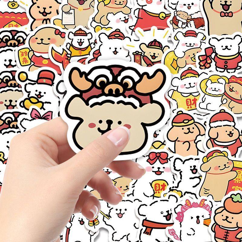 180张新年线条小狗卡通可爱新款新春diy手账装饰防水贴画