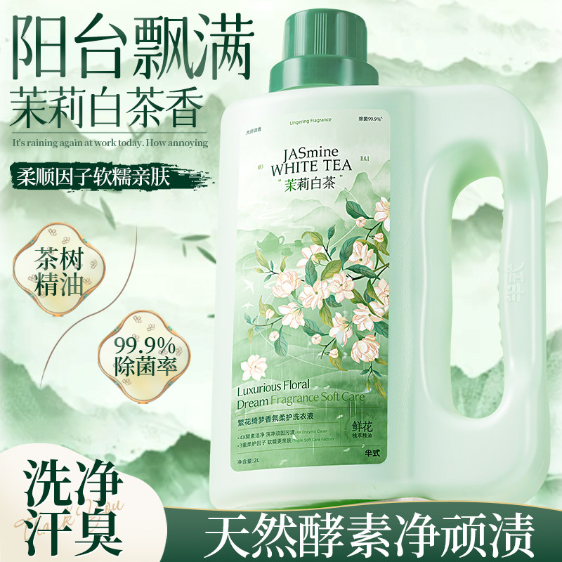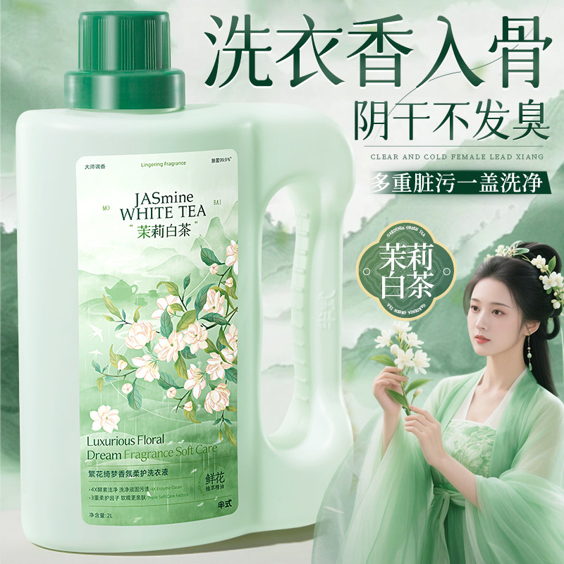 茉莉白茶酵素香氛洗衣液家用持久留香72小时香水去污柔顺多效衣物