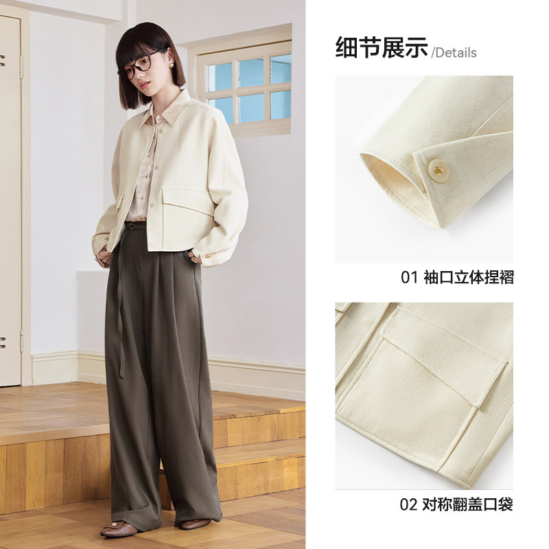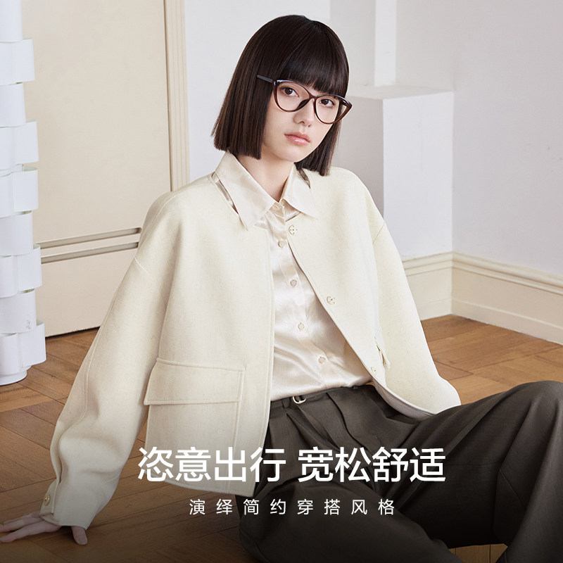 爱居兔小香风短外套女2025年秋季新款都市通勤风宽松圆领夹克上衣
