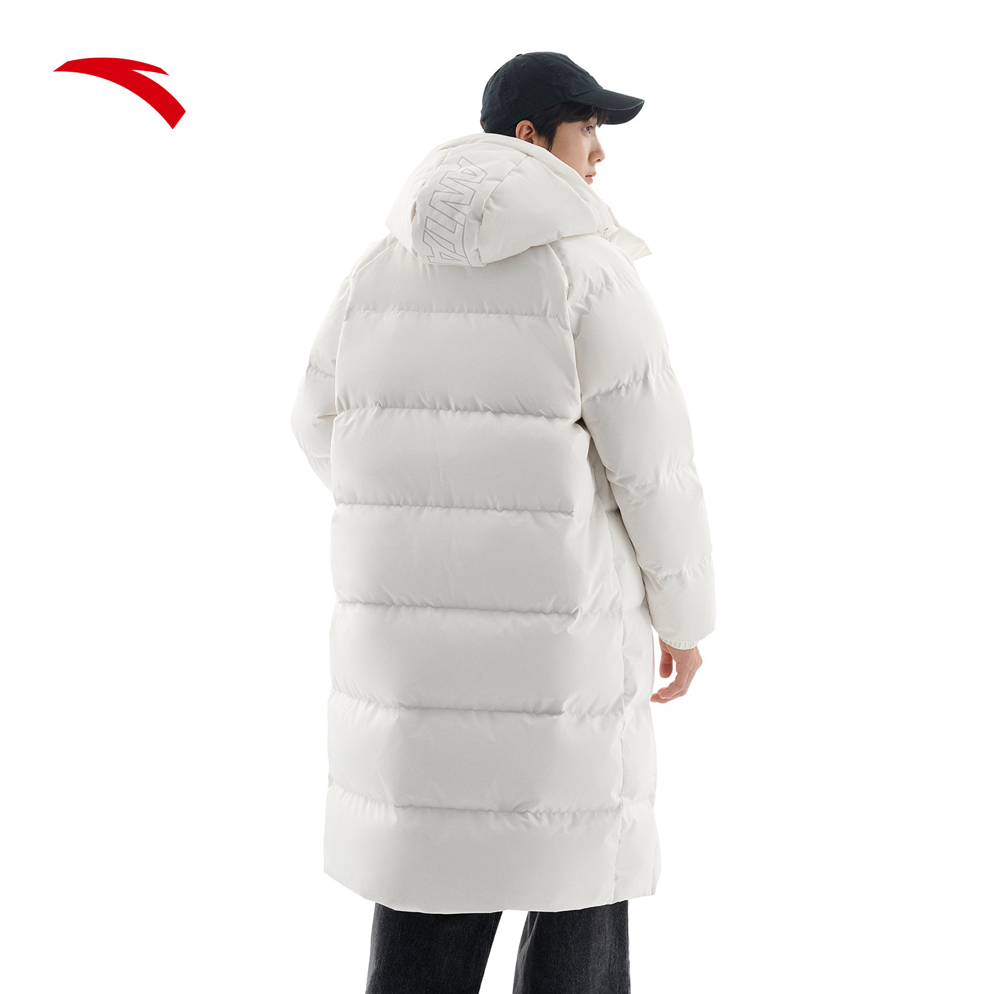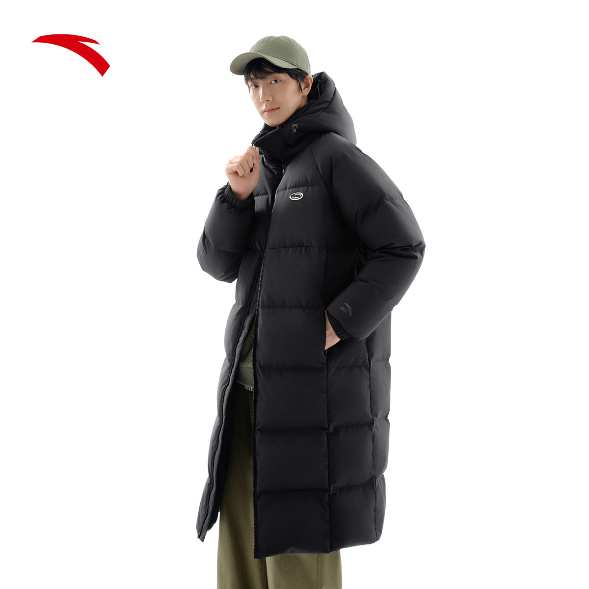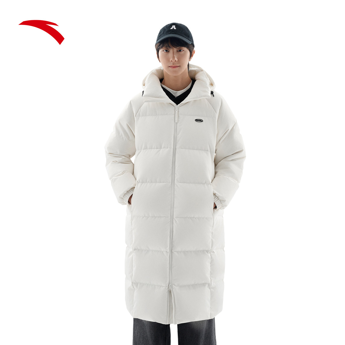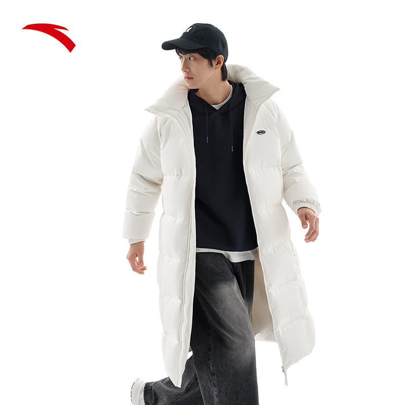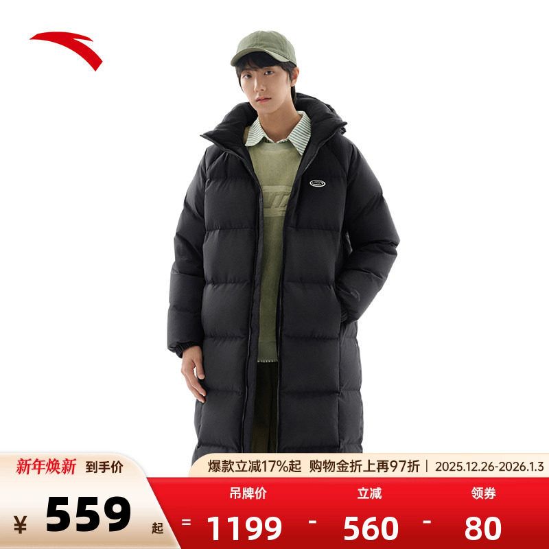 安踏面包羽绒服丨长款2025冬季防泼水男女同款火山岩外套连帽羽绒
