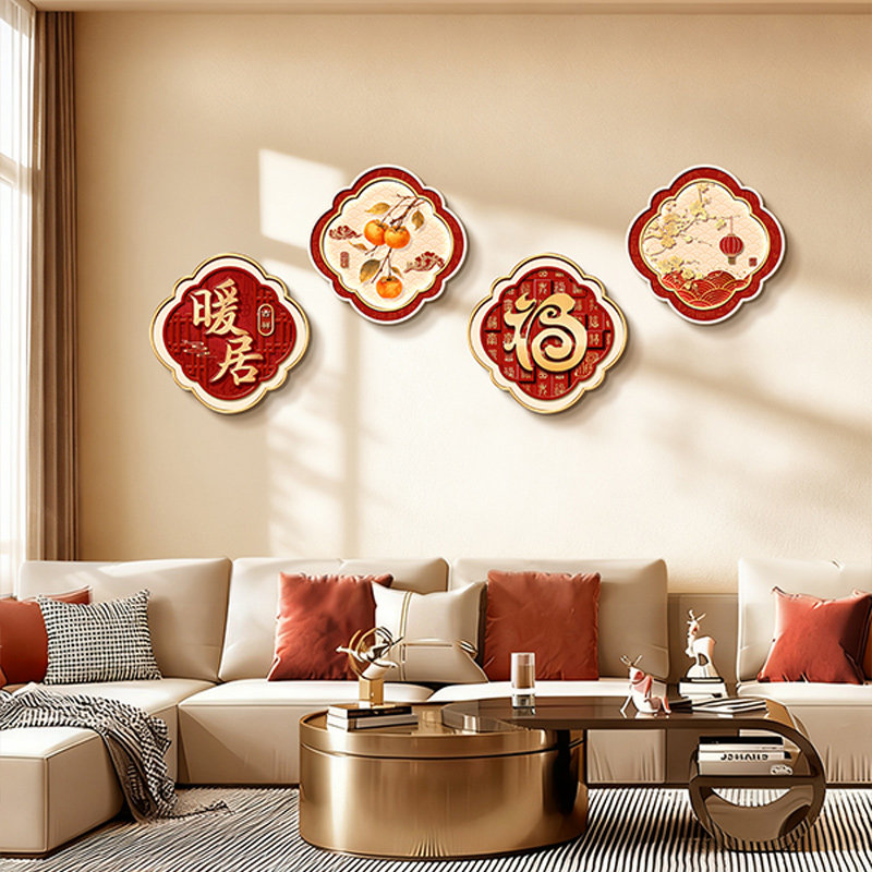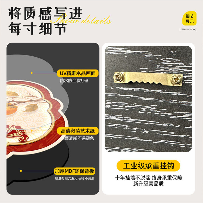 新中式餐厅装饰画饭厅墙面壁画客厅沙发背景墙挂画圆形柿柿如意画