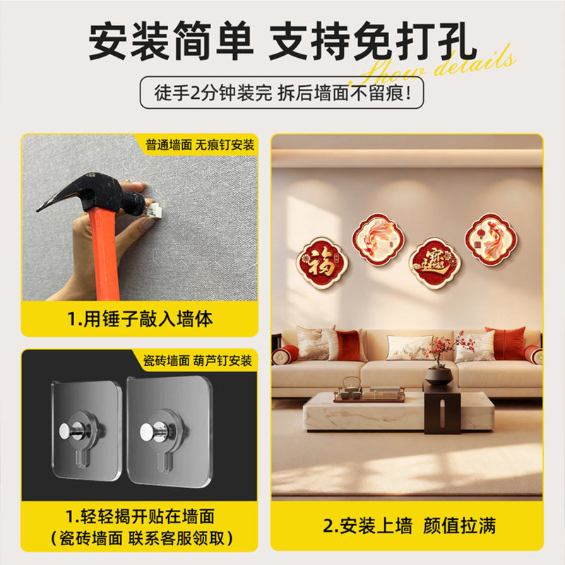 卧室床头背靠金山装饰画客厅挂画自粘中式沙发背景墙贴画壁画贴纸