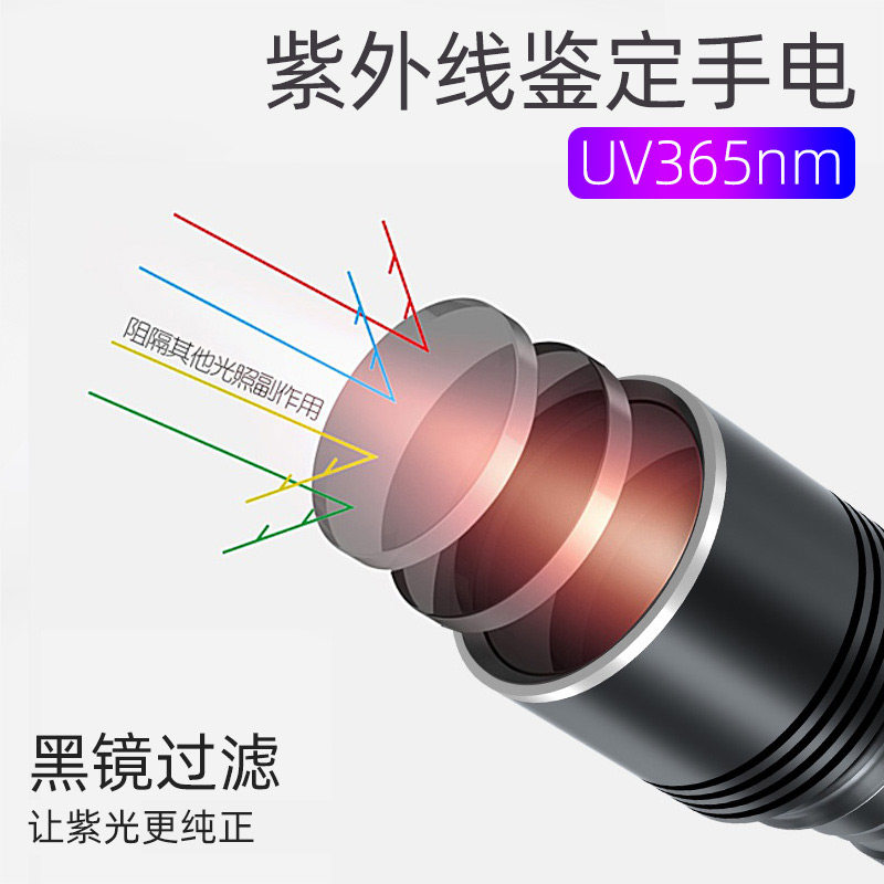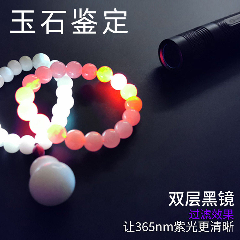 紫光灯鉴定专用紫外线手电筒365nm鉴别翡翠玉石验钞荧光灯笔锂电