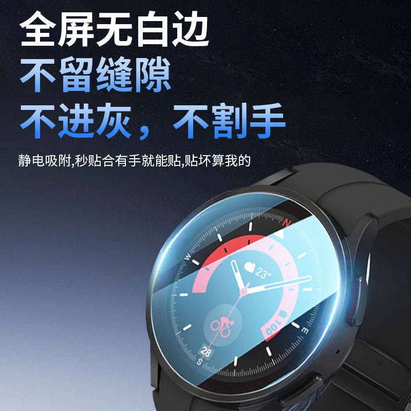 适用三星watch5pro手表膜全屏三星watch4保护膜40MM钢化膜Watch5表盘膜定位秒贴42屏幕昆仑46mm玻璃膜Galaxy
