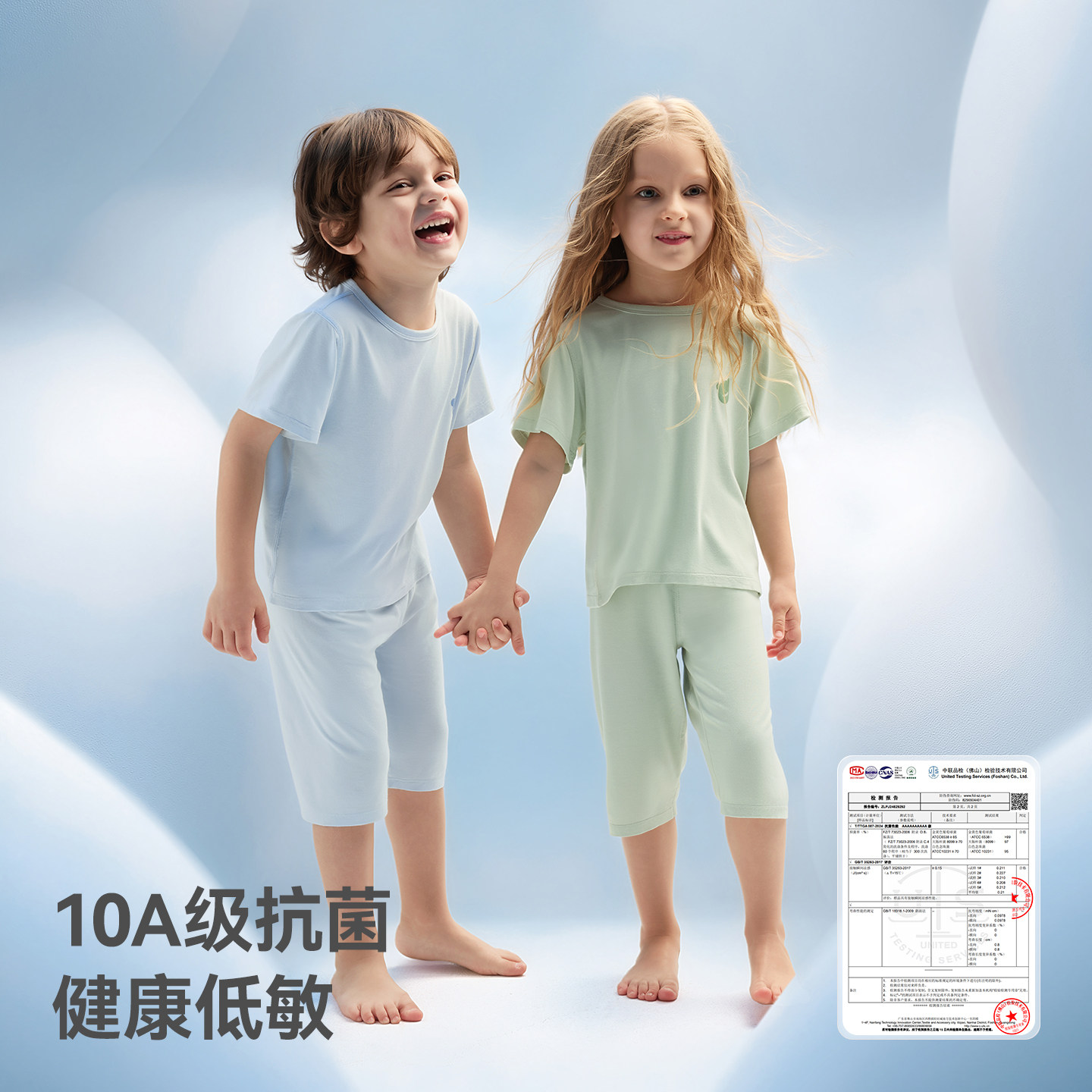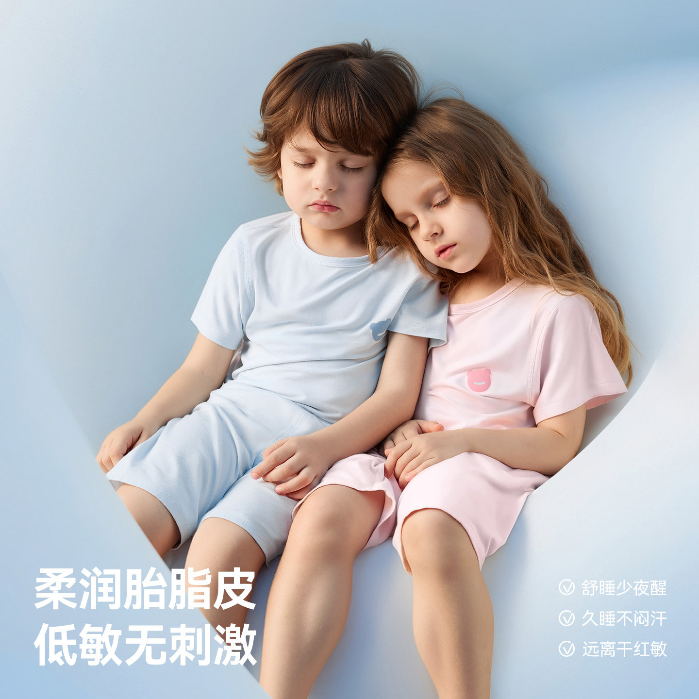 贝肽斯[胎脂皮]儿童睡衣女童短袖夏季薄款男童分体套装宝宝家居服
