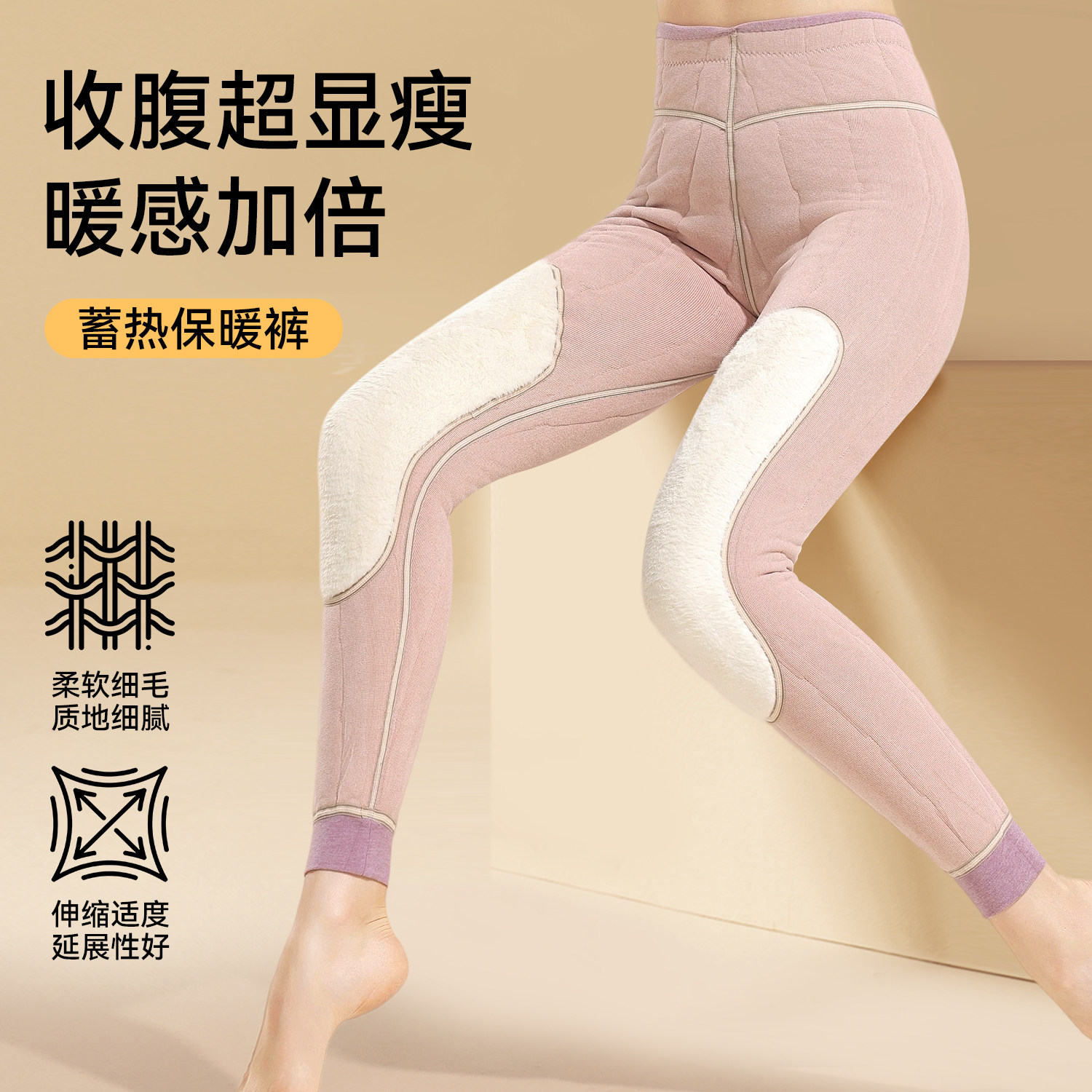 高腰秋裤女加厚加绒羊毛蚕丝打底裤女发热德绒无痕保暖羊绒棉裤冬