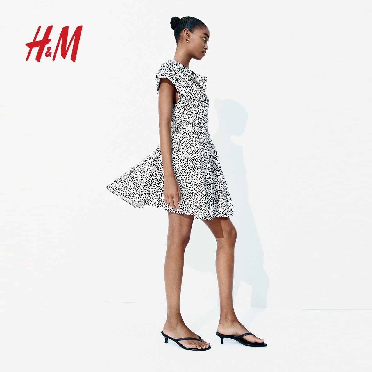 HM女装连衣裙春季小碎花连衣裙正面系扣连身裙设计碎花裙1278034