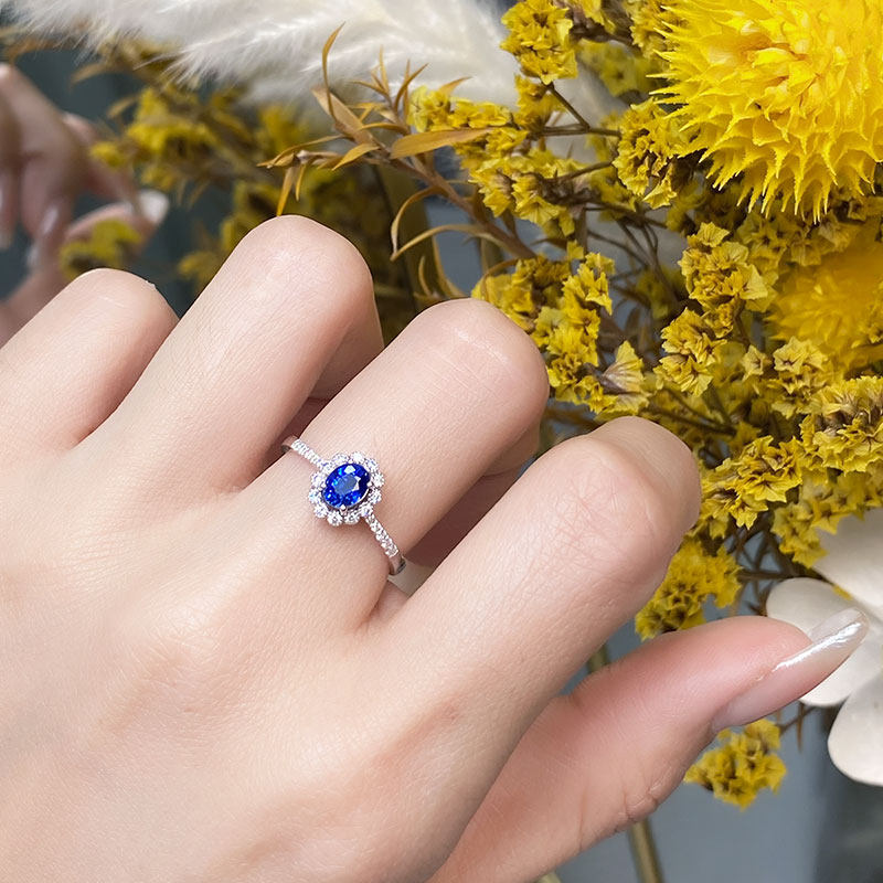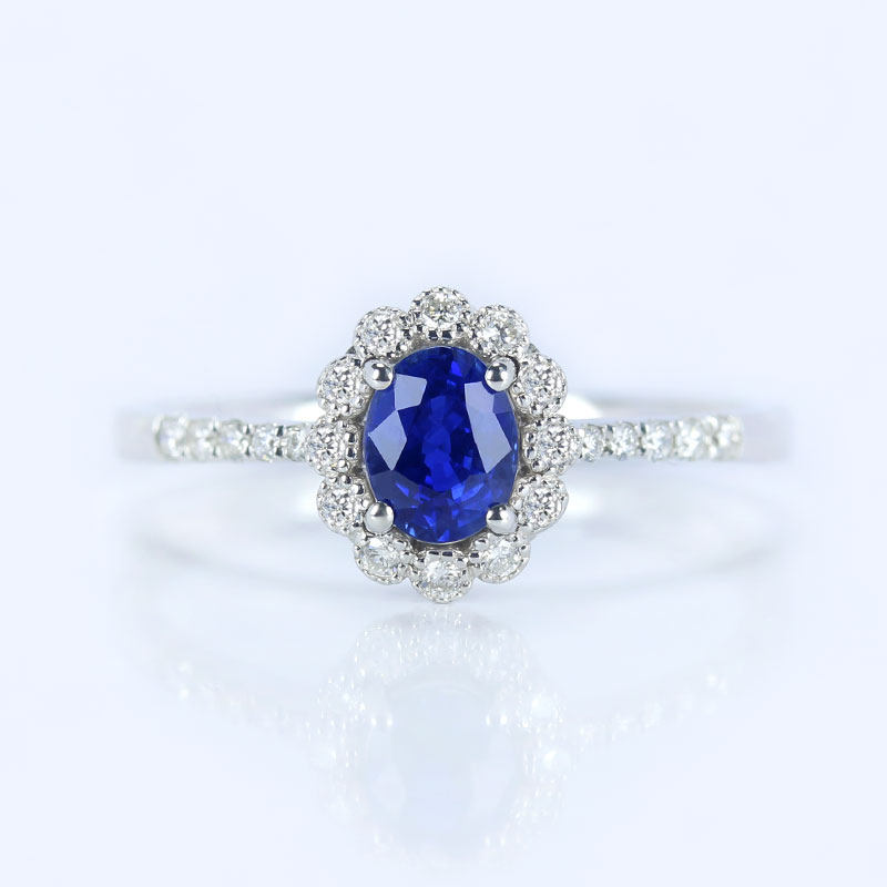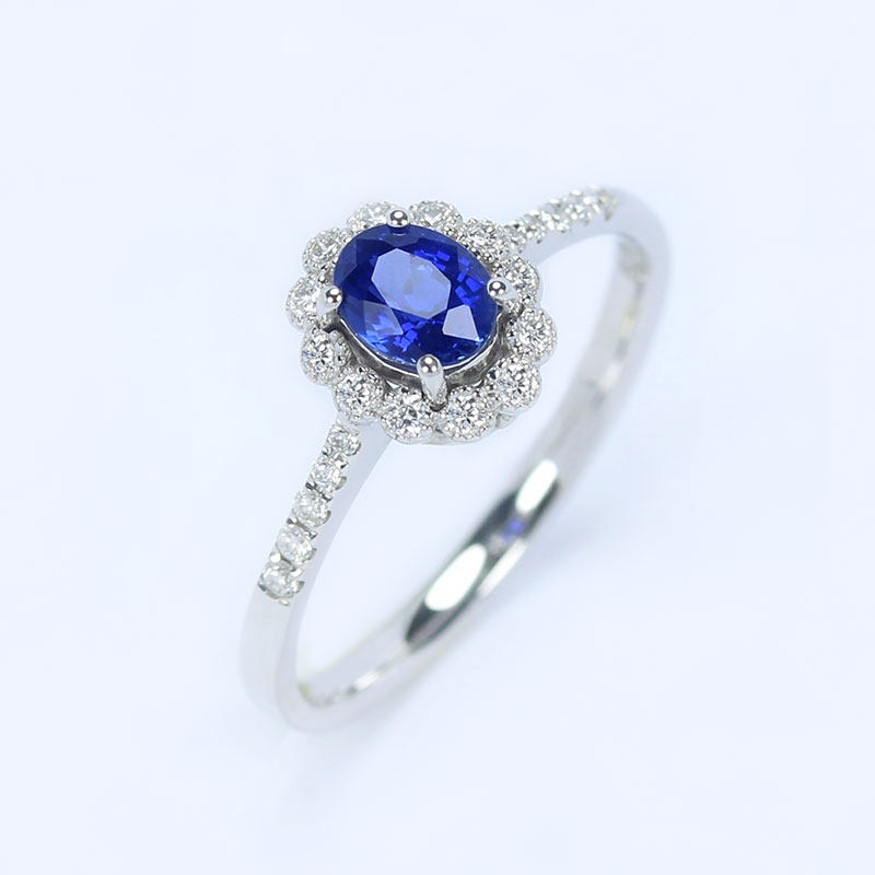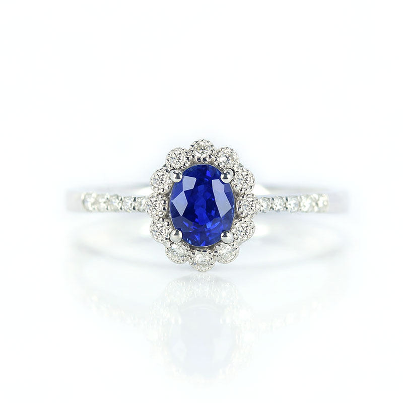 G18K白金天然皇家蓝宝石复古蕾丝戒指 艳丽正蓝色镶钻石正品女款
