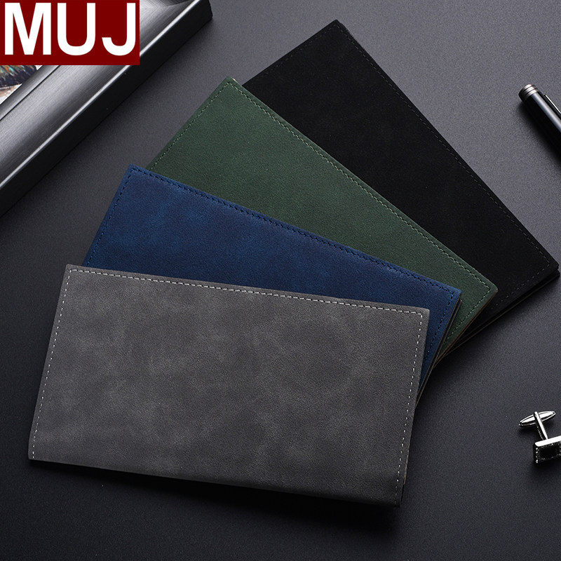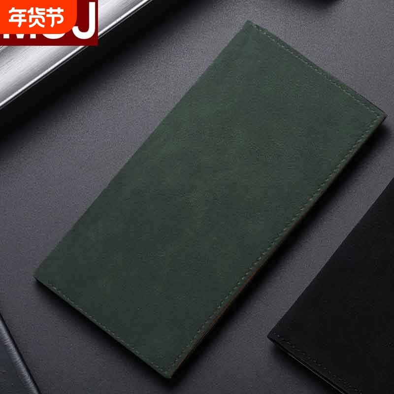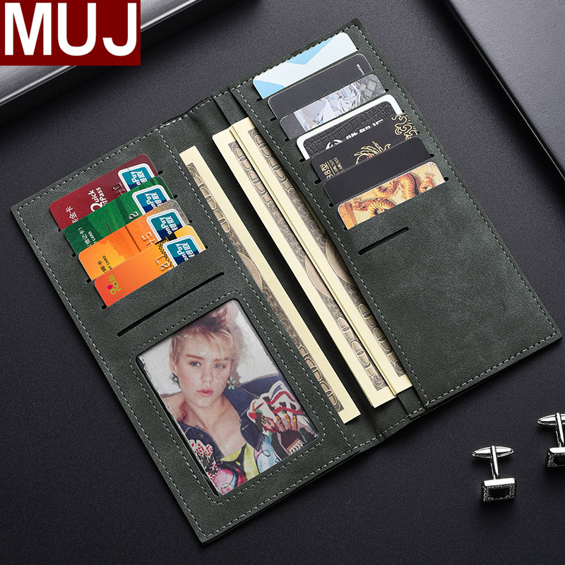 新款日本MUJ男士长款钱包翻毛皮超薄软皮皮夹钱夹证件卡包小巧