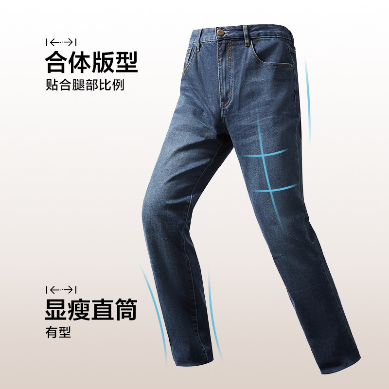 吉普专柜秋冬季新款复古牛仔裤男宽松直筒大码加绒加厚水洗长裤子