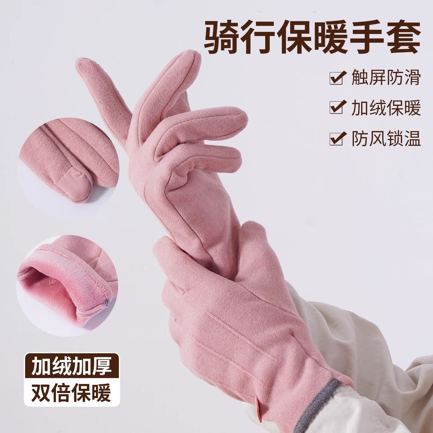 手套秋冬天女加绒保暖可爱德绒女士骑行防寒骑车防风触屏