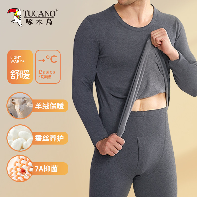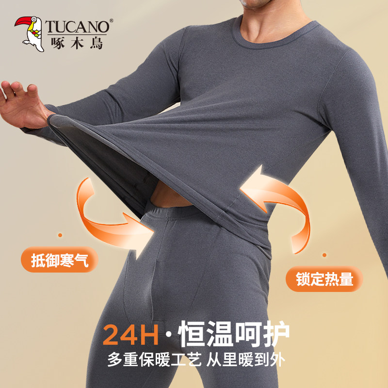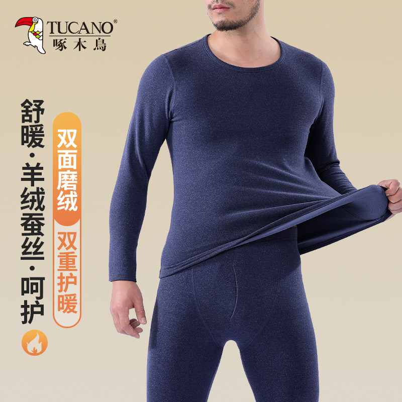 啄木鸟男士保暖内衣男款2025新款秋衣秋裤套装羊绒蚕丝秋冬季防寒