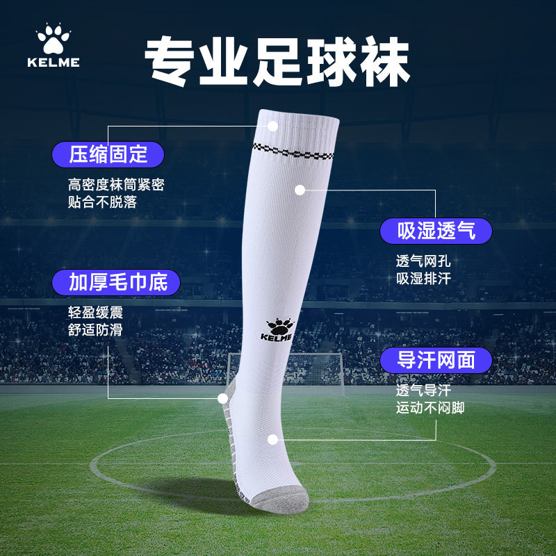 KELME卡尔美足球袜长筒青少年成人防滑足球训练加厚毛巾底运动袜