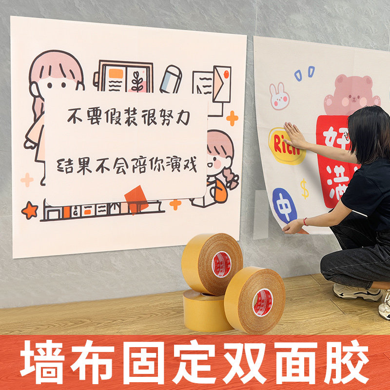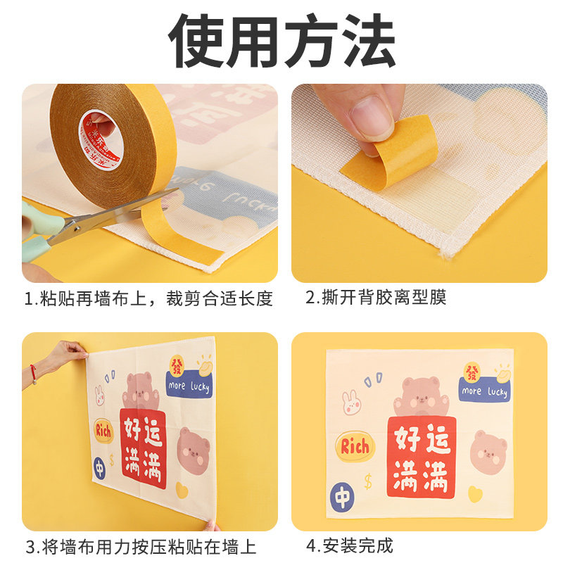 墙布双面胶高粘度强力固定壁布粘胶无痕贴防水耐高温对联春联固定贴纸福字门贴新年装饰 透明网格双面胶