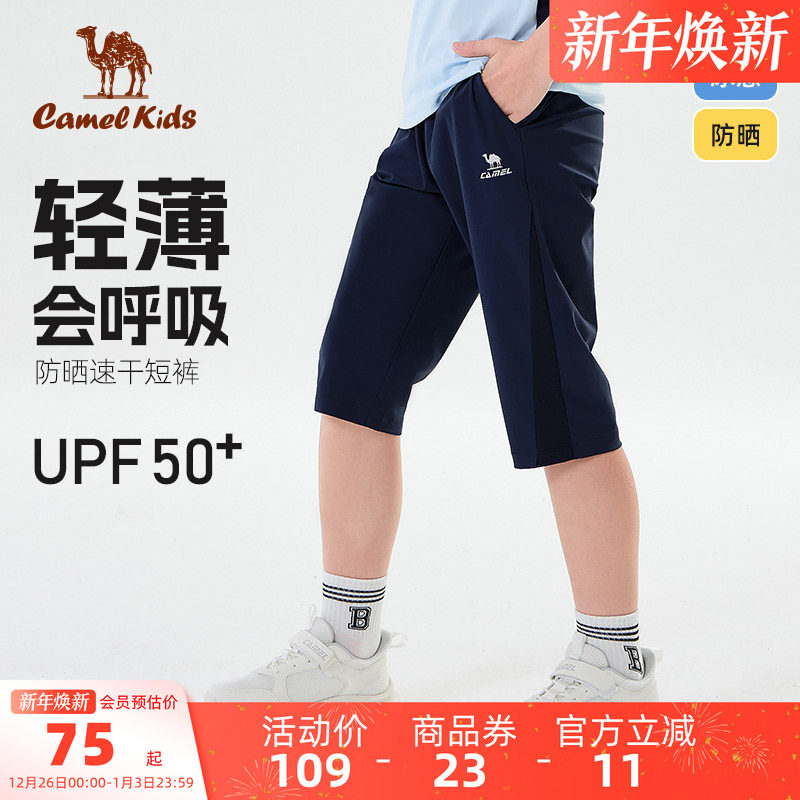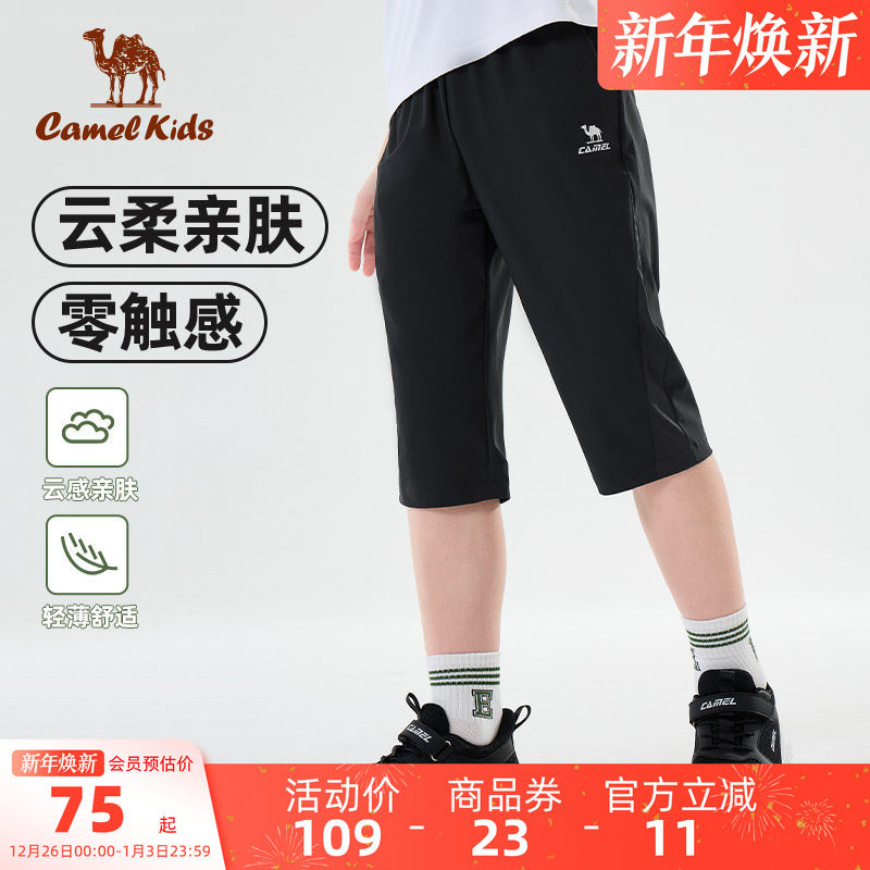 小骆驼儿童速干裤薄款2025夏季新款裤子中大童七分运动裤男童长裤