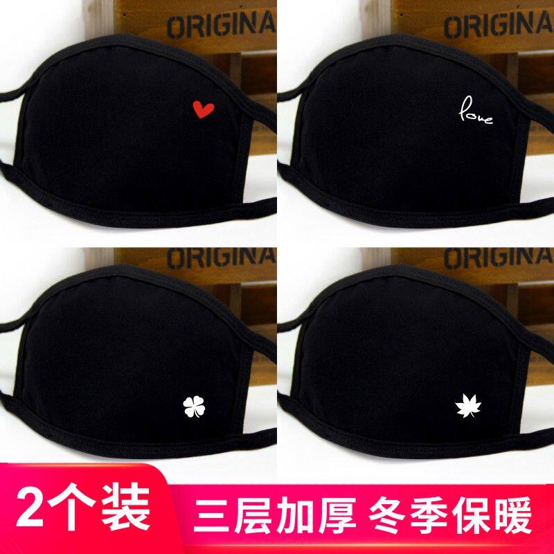 love口罩冬季保暖男女情侣黑色抖音网红加厚防寒防风防尘骑行纯棉