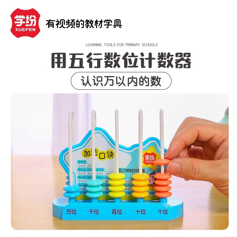 学纷五行数位计数器1-3年级教材专用小学生加大算珠五档计算器数学教具记数器儿童计算架万位五行配讲解视频