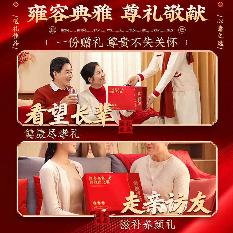 红参燕窝阿胶糕送长辈补气补血正品官方旗舰店年货礼盒送礼核桃