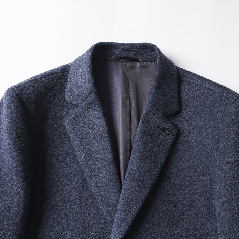 纯羊毛双面呢大衣男士 中长款过膝双面羊绒外套 西装领毛呢子风衣